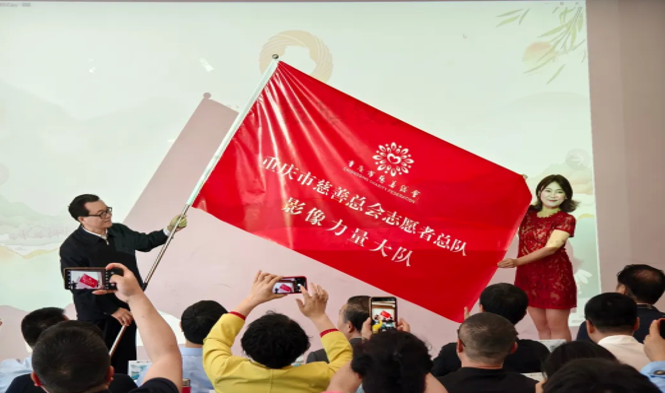 5月12日,由重庆市文化旅游摄影协会与重庆市慈善总会联合打造的“影像力量志愿者大队”正式宣布成立。市慈善联合总会副会长况由志向“影像力量”志愿者大队授旗并讲话;志愿者大队大队长冯佳分别向重庆工商大学文新学院和重庆邮电大学传媒艺术学院影像力量志愿者分队授旗。重庆市文旅委、重庆市民政局、重庆市慈善总会、重庆史研究会、摄影协会会员代表和两所学院的部分大学生志愿者共同见证了这一历史时刻。
