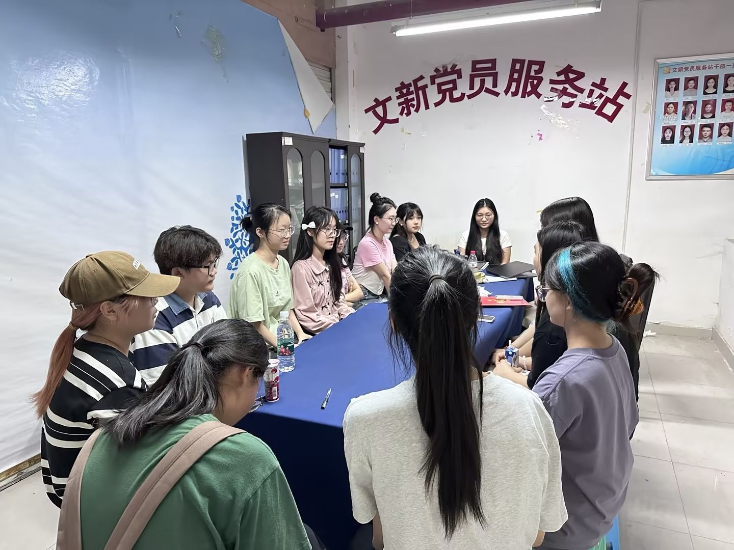 会议伊始,党员服务站工作站对全体新成员的加入表示了最热烈的欢迎。紧接着,各位成员依次介绍了自己所属的部门以及个人兴趣爱好。随后,王咏琪、姚念希、张艺馨三位党服站长详尽阐述了党员服务站各部门的工作职责、业务流程及即将开展的重点工作,对成员提出了新的要求,要坚定政治信仰,始终牢记共产党员的初心使命,在大是大非前面保持头脑清醒、旗帜鲜明,帮助新成员快速融入并明确自身定位。在此基础上,会议还特别强调了“一站式”学生公寓文化建设的重要性,计划在学生公寓的公共区域设立文化墙,展示党的光辉历程、优秀党员事迹、服务站活动剪影等内容,营造浓厚的红色文化氛围,激励同学们向榜样学习,坚定理想信念。在学生公寓一楼布置宣传栏,定期张贴时事政策、服务站动态、学习资料等,加强党的理论知识学习,用习近平新时代中国特色社会主义思想武装头脑、指导实践,提升思想觉悟。