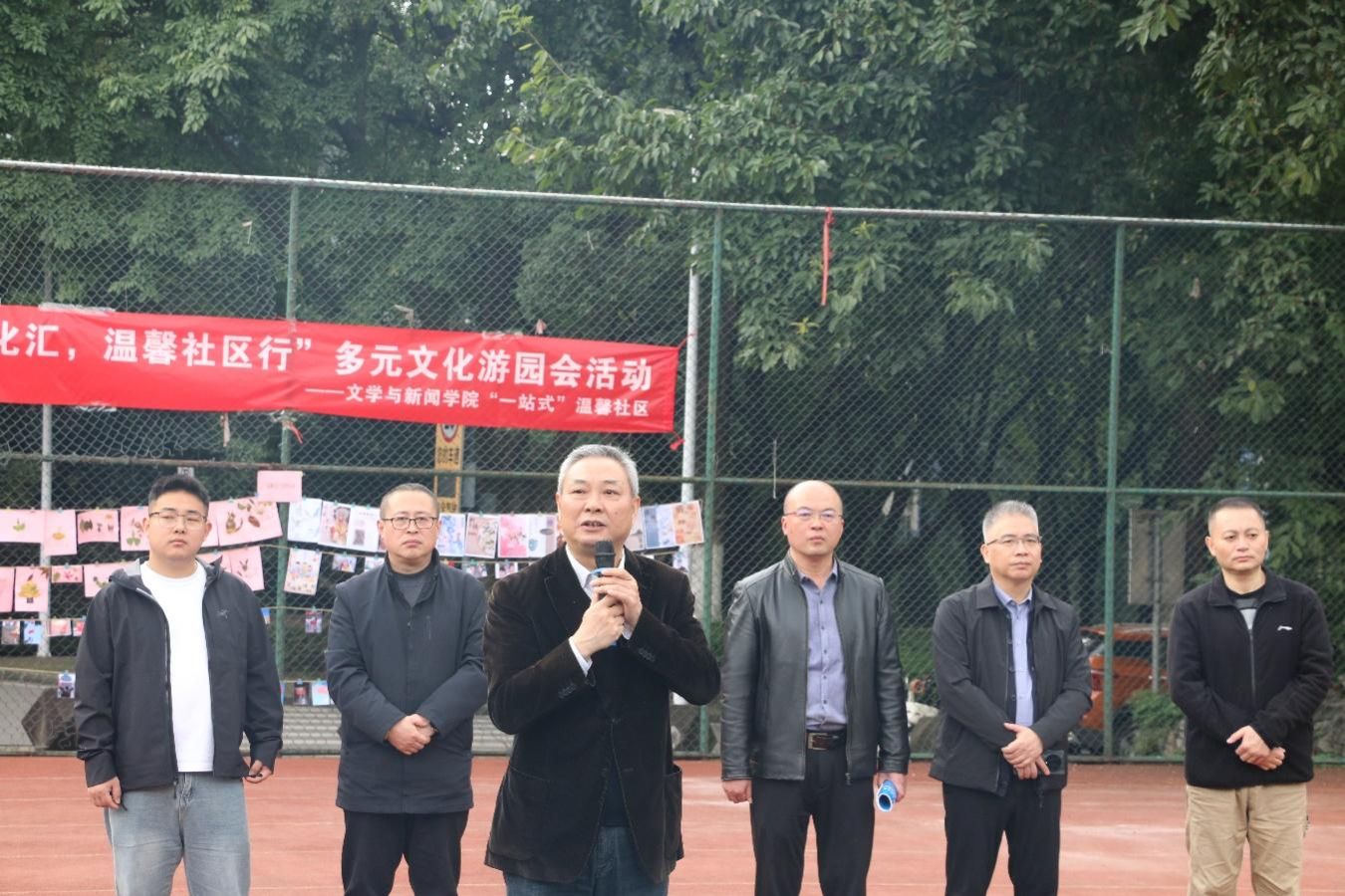 李国军在游园会上致辞。他说,根据教育部“一站式”学生社区综合管理模式建设工作指南和重庆市教委部署要求,学校各个学院依托各自基础建立了一站式公寓,开展了丰富多彩公寓文化节活动,打造了思想教育、师生交流、文化活动、生活服务于一体的教育生活园地。公寓不仅是同学们储备动力的场所,更是大家温馨的家园。他给文新学院提出要求,一是期望同学们能够充分发挥自身的主观能动性,集思广益,积极主动地参与到校园文化的建设之中;二是期望学院能多开展一站式公寓活动,营造了温馨和谐的社区氛围,不断提升同学们的幸福感与归属感。
