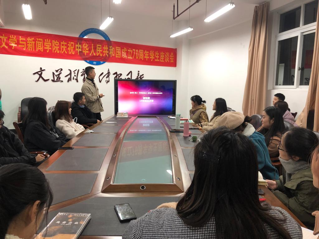 为培养同学们阅读的习惯,提高大家对专业知识更全面的认识,同时提供一个相互交流、分享读书感受的平台。9428cn太阳集团古天乐研分会于2019年12月10日18:00在主校区慧智楼90205举办了读书分享交流会。文新学院研分会主席、部长及成员参与了本次活动。