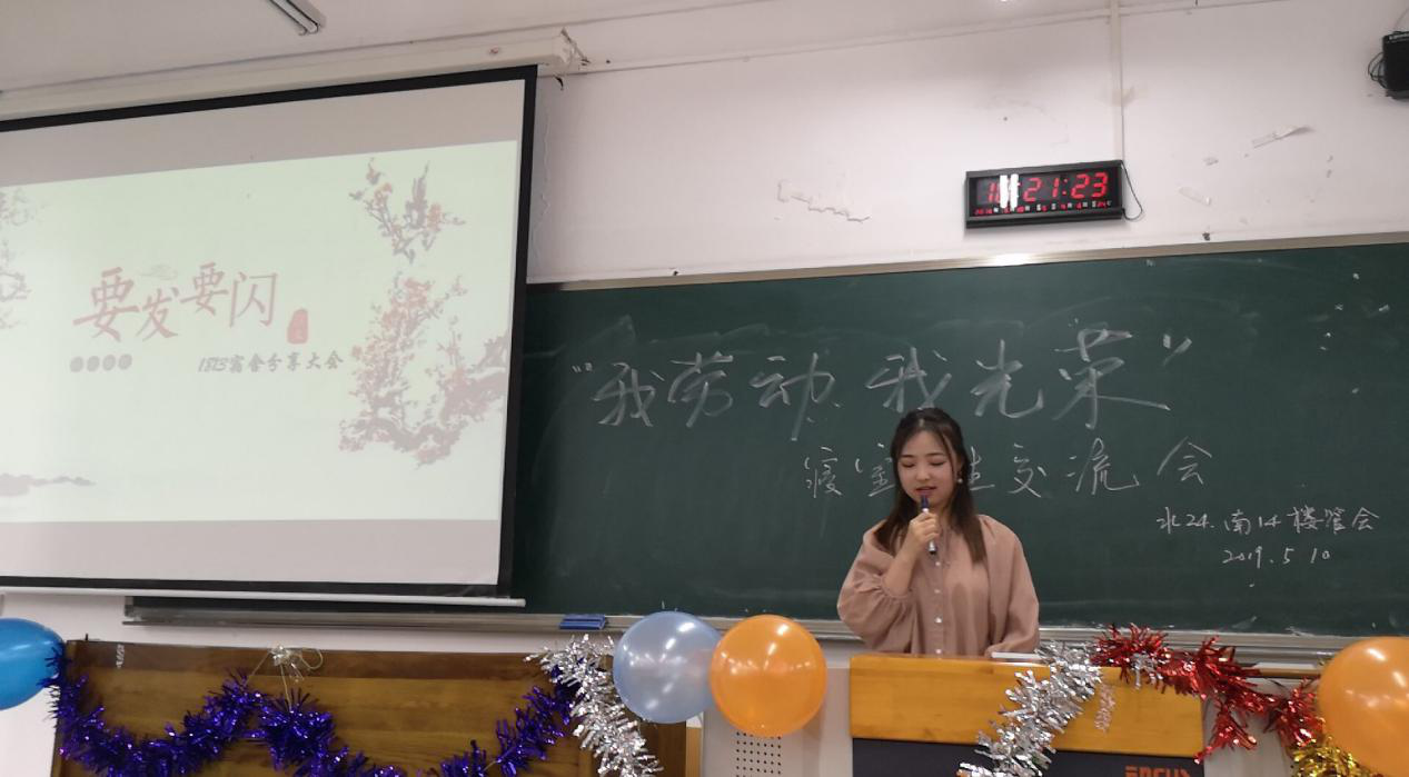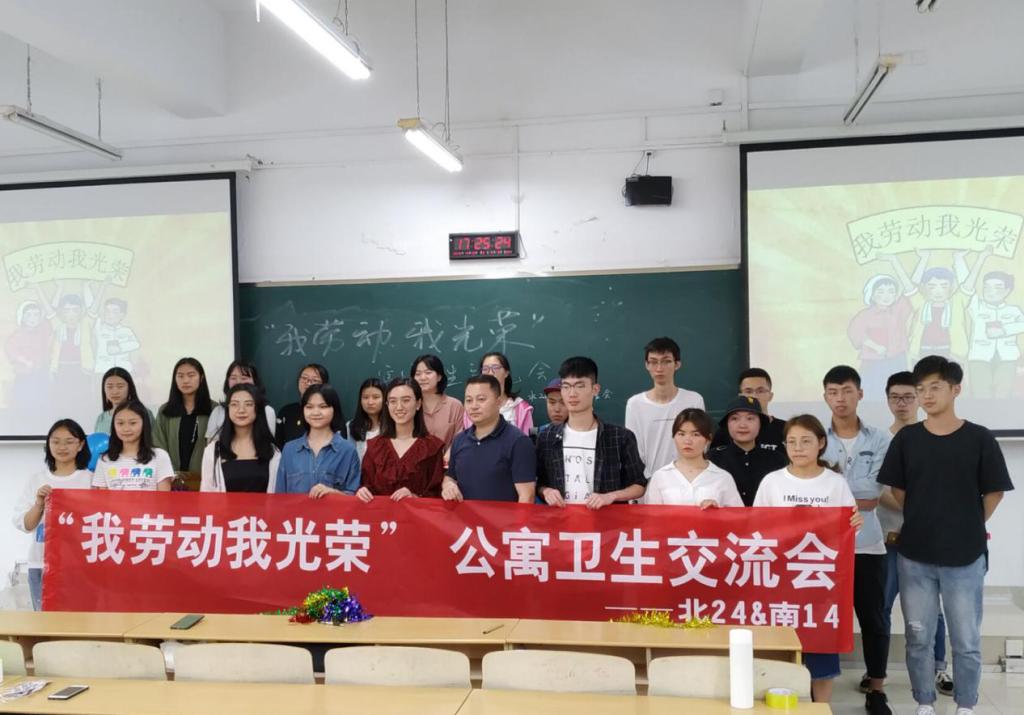 为了提高同学们打扫寝室卫生的积极性,发挥优秀寝室在内务方面的模范带头作用,减少寝室矛盾,实现劳动育人。5月10日,北24楼管会携手南14楼管会在博智楼07206联合开展了主题为“走出公寓 追梦逐梦——我劳动我光荣之寝室卫生劳动沙龙”。我校公寓管理科陈剩勇老师、楼管会主任孔海啸老师以及公寓代表出席了本次活动。