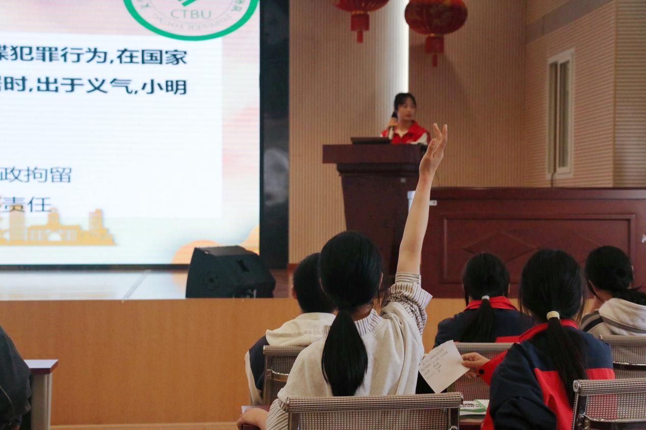 宣讲中,志愿者们围绕国家安全概念、国家安全的基本内容、如何从自身出发保障国家安全等方面展开活动,结合实际案例着重讲述了贴近学生生活的“网络安全”,引导同学们增强安全防范意识。同时,志愿者们精心设置了趣味知识问答环节,将本次宣传活动氛围推向高潮。同学们热情高涨,迫不及待高举双手,在坚定有力的回答中,彰显了新时代少年的风姿。