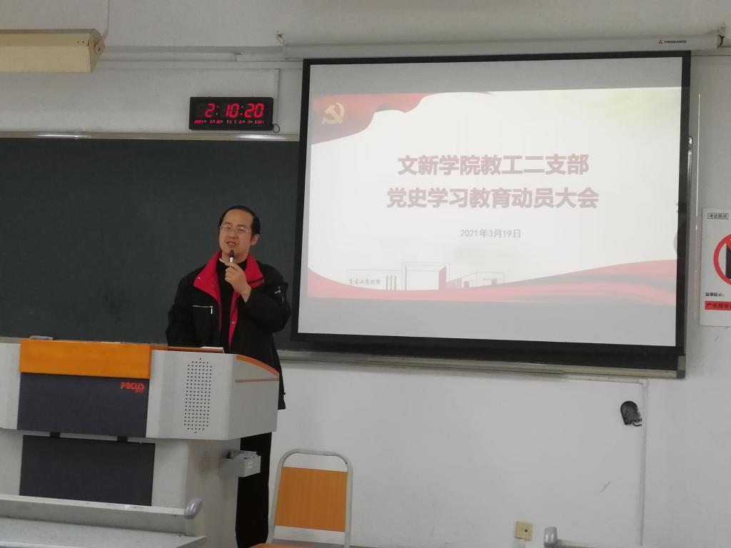 3月19日下午,我院教工第二党支部在90625教室召开党史学习教育动员大会,正式启动了党史学习教育活动。