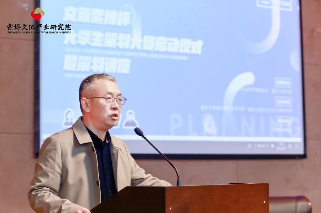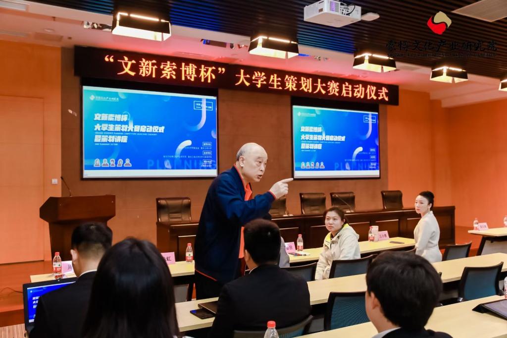 王小蓉理事长在启动仪式上简要介绍了索博文化产业研究院的情况及校企合作计划。随后,研究院资深策划人袁长城结合实际案例,向同学们生动讲解了策划工作的具体事项和要求。