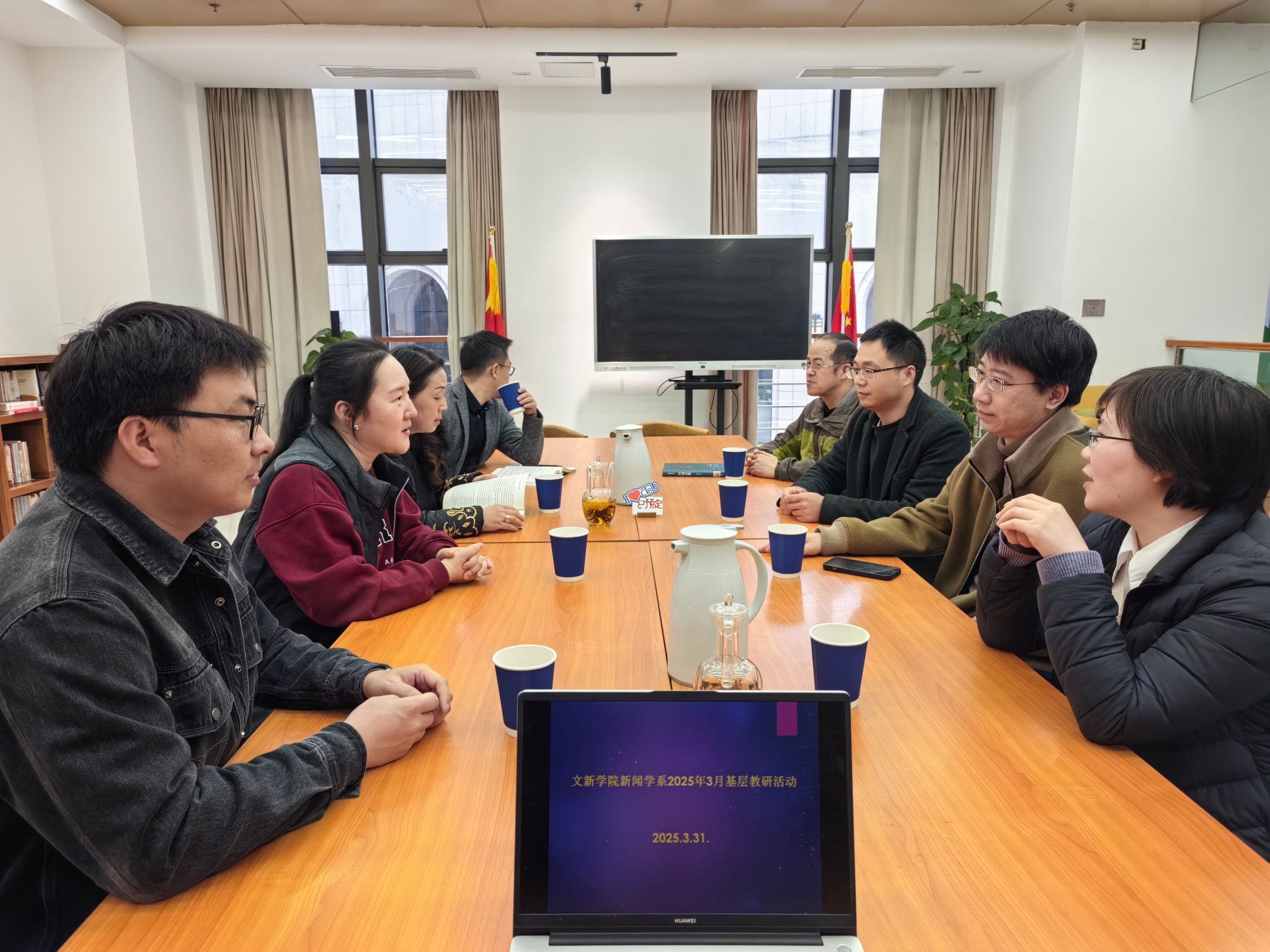 3月31日,9428cn太阳集团古天乐新闻学系在校图书馆召开3月基层教研活动。新闻学系全体教师参加了本次教研活动,活动由新闻学系系主任廖宇翃主持。