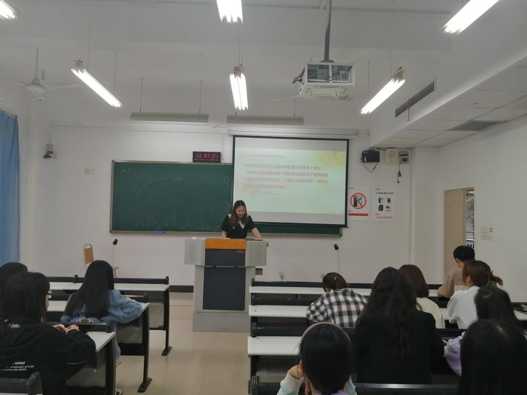 5月27日,学生一支部支部书记张小焕在慧智楼90401教室为党员讲党课。