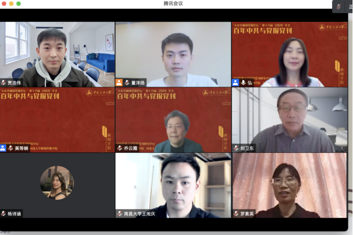 11月28日,“人民共和国党报论坛”第十八届(2021)年会在中国传媒大学隆重举行。此次研讨会由中国传媒大学新闻学院、中国传媒大学党报党刊研究中心与河北大学新闻传播学院联合主办。会议邀请了人民日报社副总编辑崔士鑫,《求是》杂志社副总编辑罗素英,新华日报社党委副书记兼总编辑顾雷鸣,以及教育部社会科学委员会委员兼新闻传播学科召集人、广西大学新闻与传播学院院长郑保卫,中国人民大学新闻学院教授、马克思主义新闻观研究中心主任邓绍根,中国传媒大学党报党刊研究中心副主任金梦玉等多位新闻业界、学界知名人士做论坛主题演讲。我院新闻学硕士研究生贾浩伟应邀参加第一分论坛进行研讨交流,