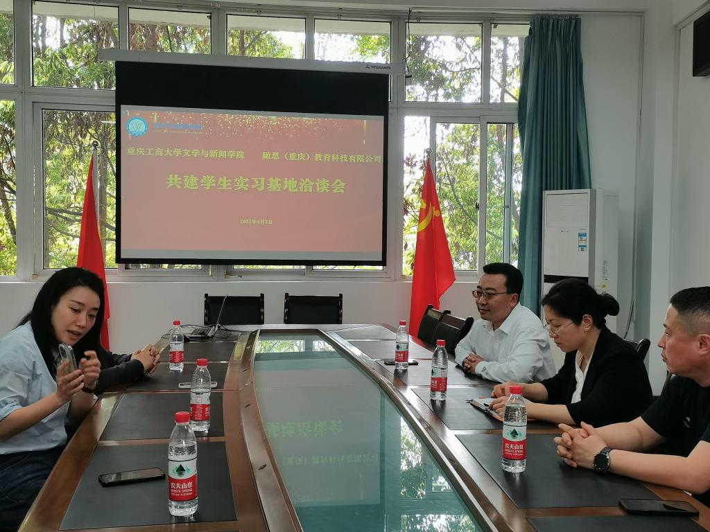 4月3日,重庆市青联新闻出版与新媒体界别副主任 徐翔携瞰思(重庆)教育科技有限公司一行到我院洽谈学生实习基地建设合作相关事宜。学院党委书记于频、院长殷俊、党委副书记程元元参加洽谈会。