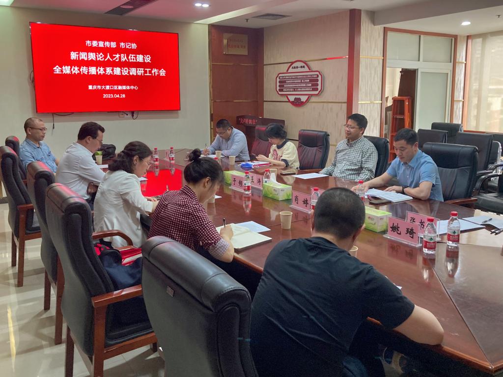 4月28日下午,我院与重庆市大渡口区融媒体中心共建实习基地。学院党委书记于频、院长殷俊、广告系系主任王凌峰、新媒体系系主任姚琦等一行前往大渡口区融媒体中心签约,并与该中心主任王涛、副主任冯勇等进行了调研座谈。座谈会由大渡口区融媒体中心主任王涛主持。