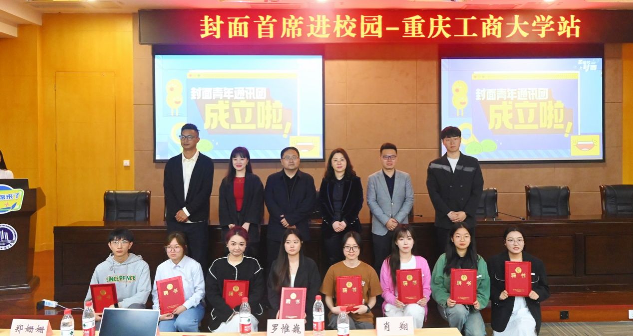 在现场高潮迭起的气氛中,封面新闻领导向我校10位优秀学生颁发封面青年通讯团校园记者聘书,梁家旗为在场师生介绍了封面新闻的系列校园活动。