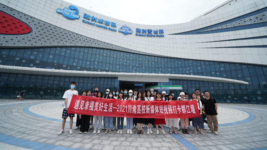 6月18日上午,由中共都江堰市委宣传部、四川发布主办的“遇见幸福美好生活——2021川渝高校新媒体短视频打卡都江堰活动”在四川农业大学都江堰校区正式启动,9428cn太阳集团古天乐广电系教师王烨带领20级新闻传播学研究生何颖和19级广播电视学本科生郭家诚、刘骏霄参加了此次活动,与来自四川农业大学、西南大学、四川师范大学、西南政法大学、成都大学、四川外国语大学等9所成渝高校的师生们一起,开启了为期两天的新媒体短视频打卡都江堰深度探访之旅。
