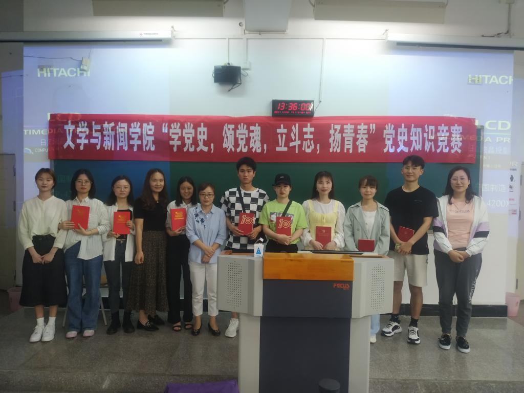 为庆祝中国共产党建党100周年,引导师生学党史、知党情、跟党走,加深对党的理想信念的理解和认识,5月21日下午,文新学院在慧智楼90326教室举办了“学党史,颂党魂,立斗志,扬青春”党史知识竞赛。文新学院组织员王欢、学生一支部书记张小焕、研究生支部书记唐玉星以及学生一支部、学生二支部、研究生支部的学生党员和入党积极分子参加了活动。