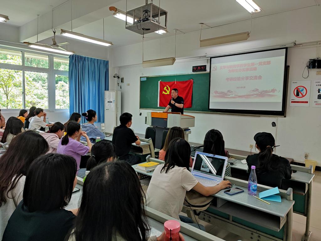 5月18日,文新学院学生一支部在慧智楼90625教室开展考研经验分享交流会,以实际行动践行学党史、办实事,将党史教育推向深入。文新学院分党委副书记程元元出席交流会,学院18级、19级共计100余名同学参加了此次分享交流会,会议由支部书记张小焕老师主持。