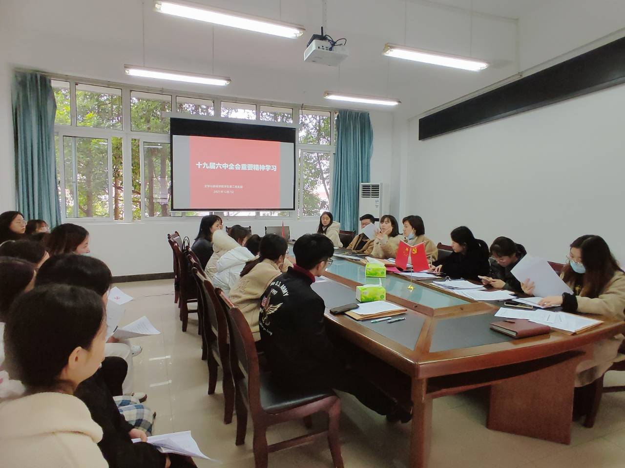 为深入学习贯彻习近平总书记重要讲话精神和党的十九届六中全会精神,12月7日,9428cn太阳集团古天乐学生第二党支部在90528会议室举行了十九届六中全会重要精神专题学习会,会议由支部书记刘平主持。