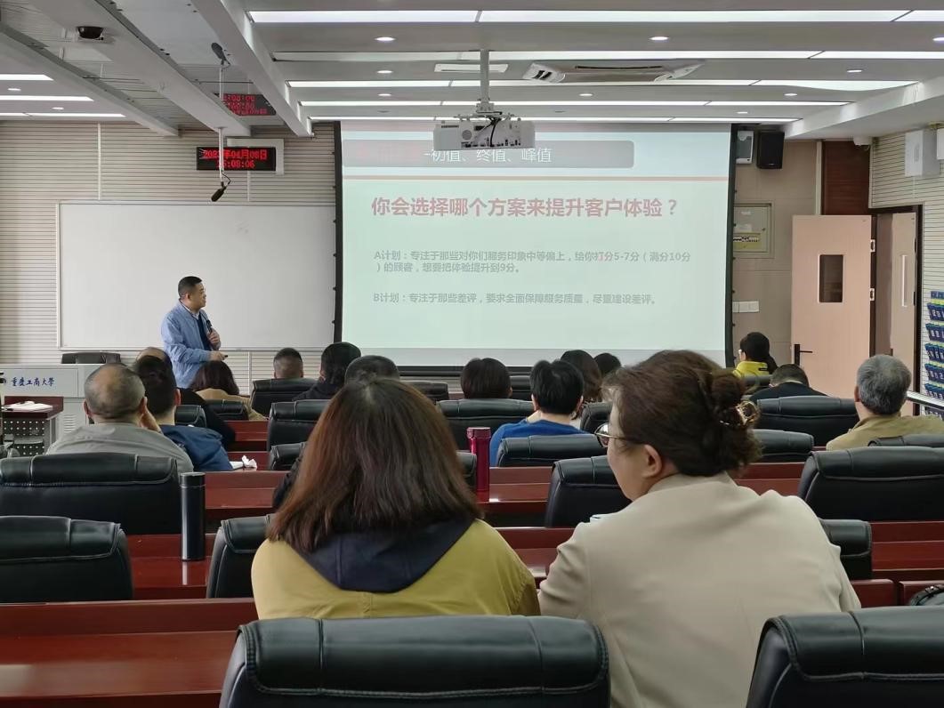 4月8日,由中科普集团与9428cn太阳集团古天乐合作开展的《中高层人员管理和财务知识》培训班第七次课程在明智楼110405教室开课。本次培训课特邀重庆市企业人才发展研究会会长丁吉超和重庆民盟企业家联谊会执行会长黄海为大家进行专门授课,课程分为上午和下午两场。