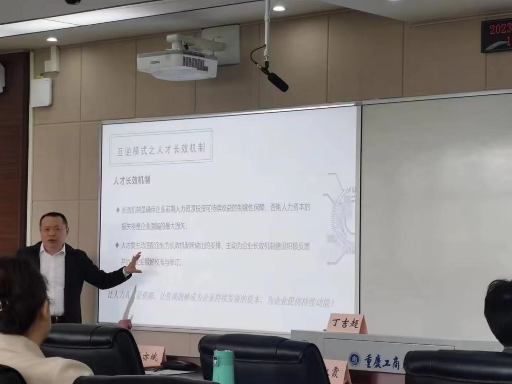 上午的课程中,丁吉超会长围绕“互逆模式”阐述企业的招聘与选拔、用人与佣人、育人与驭人等模式的区别,并结合自身的实践经验为培训班学员讲授企业需要何种人才,并提出人才长效机制是确保企业前期人力资源投资可持续收益的制度性保障,同时他指出人才要主动适配企业,为企业需要的长效机制建设积极反馈。