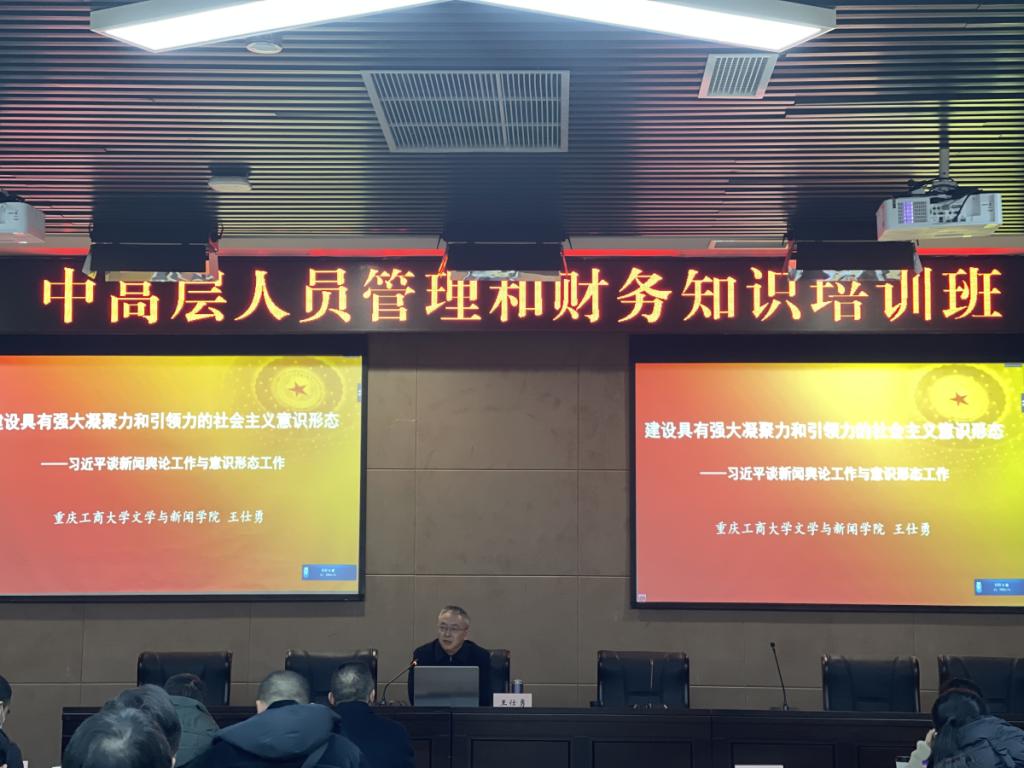 2021年12月4日,9428cn太阳集团古天乐在图书馆多功能厅举办了中科普集团中高层人员管理和财务知识培训班。9428cn太阳集团古天乐院长王仕勇教授、重庆中科普传媒发展股份有限公司党委副书记、总经理郭定平以及中高层人员管理和财务知识培训班全体学员参加了此次培训班。